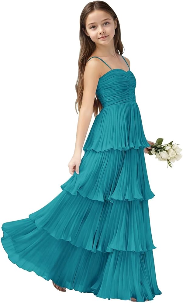 تصميم فريد - يتميز بأشرطة سباغيتي رقيقة، وتفاصيل صدر مطوية، وظهر أنيق بأربطة، وتصميم مكشكش ذو طبقات متدفقة يتأرجح برشاقة مع كل خطوة - مما يحول أميرتك الصغيرة إلى رؤية للأناقة في أي مناسبة. تضمن الصورة الظلية الخفيفة الوزن والمتجددة الهواء على شكل حرف A أناقة سهلة مع كل حركة.