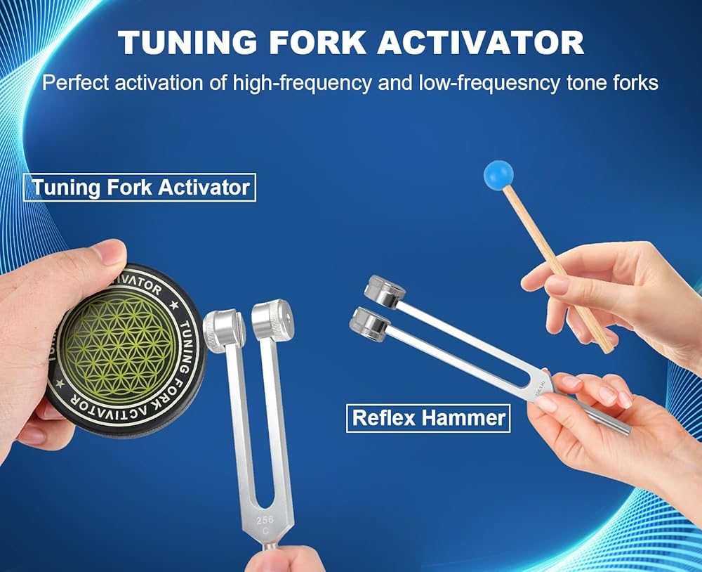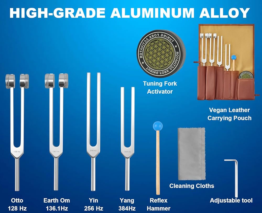 • 【 شوكة ضبط للشفاء】 شوكة ضبط مرجحة (128 هرتز، 136.1 هرتز) وغير مرجحة (256 هرتز، 384 هرتز) مصممة للشفاء الصوتي، مما يساعد على تقليل التوتر، وتعزيز التركيز لتعزيز الصحة الجيدة والرفاهية.