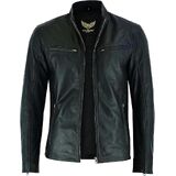سترة جلدية أصلية للرجال للدراجات النارية من جلد الخراف من Leatherick - سترة سوداء لراكبي الدراجات النارية محببة بالكامل مع سحاب وجيوب متعددة in Kuwait