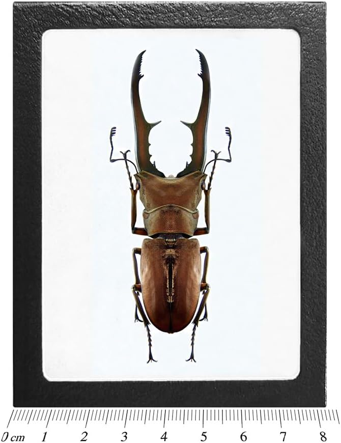 We have a much wider variety of items available on our website: www.BicBugs.com All of our insects are hand raised or from sustainable sources such as butterfly farms and aviaries. People in third world countries are cutting down the forest to plant mass crops, which are more profitable than what the natural land provides. By creating a market for insects as artwork and educational specimens we are giving them motivation to maintain the insect populations and their natural habitats. Your purchase helps prevent extinction and support the fight against deforestation and habitat destruction worldwide. If you have any questions of concerns please feel free to email us directly: [email protected]. Please see ruler in photo for approximate size of the frame and specimen in centimeters.