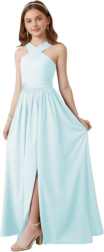 • 【التصميم】: فستان وصيفة العروس الصغيرة من Dideyttawl على شكل حرف A من الساتان الحريري بطول الأرض وأشرطة متقاطعة وفتحة الساق.