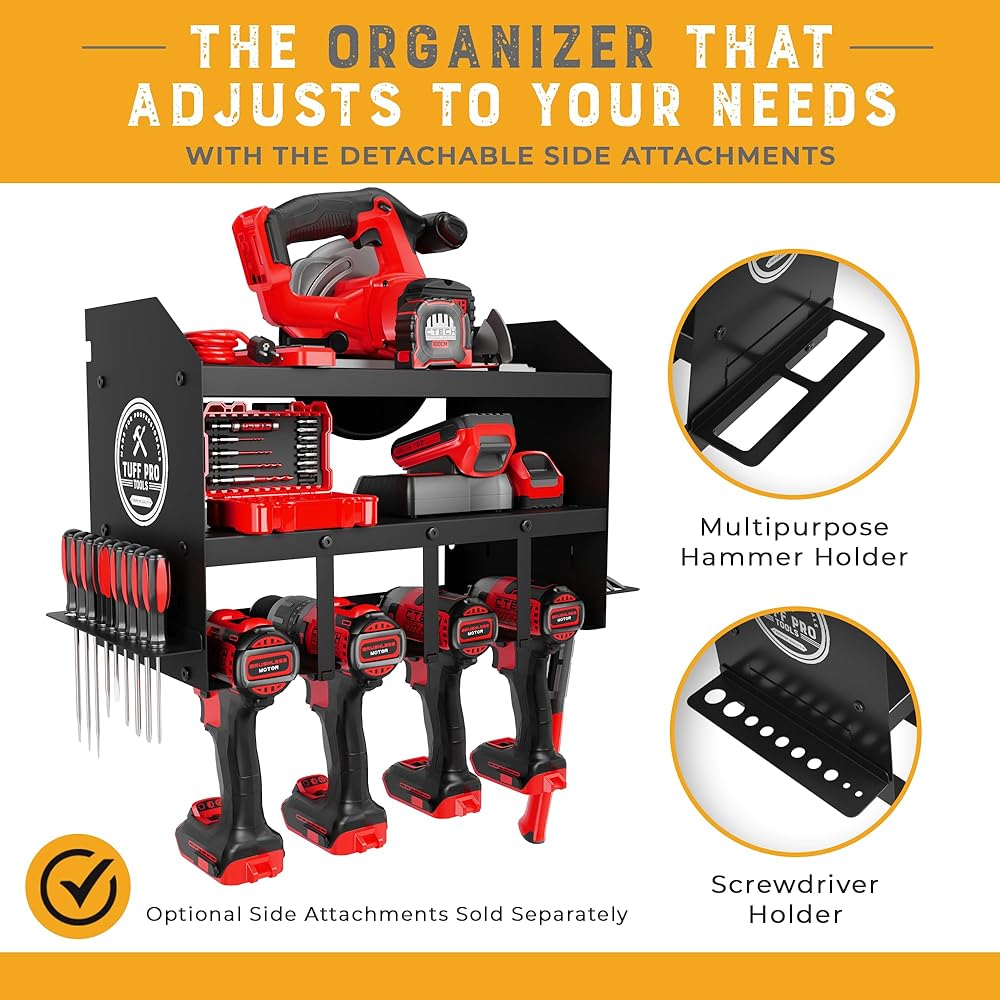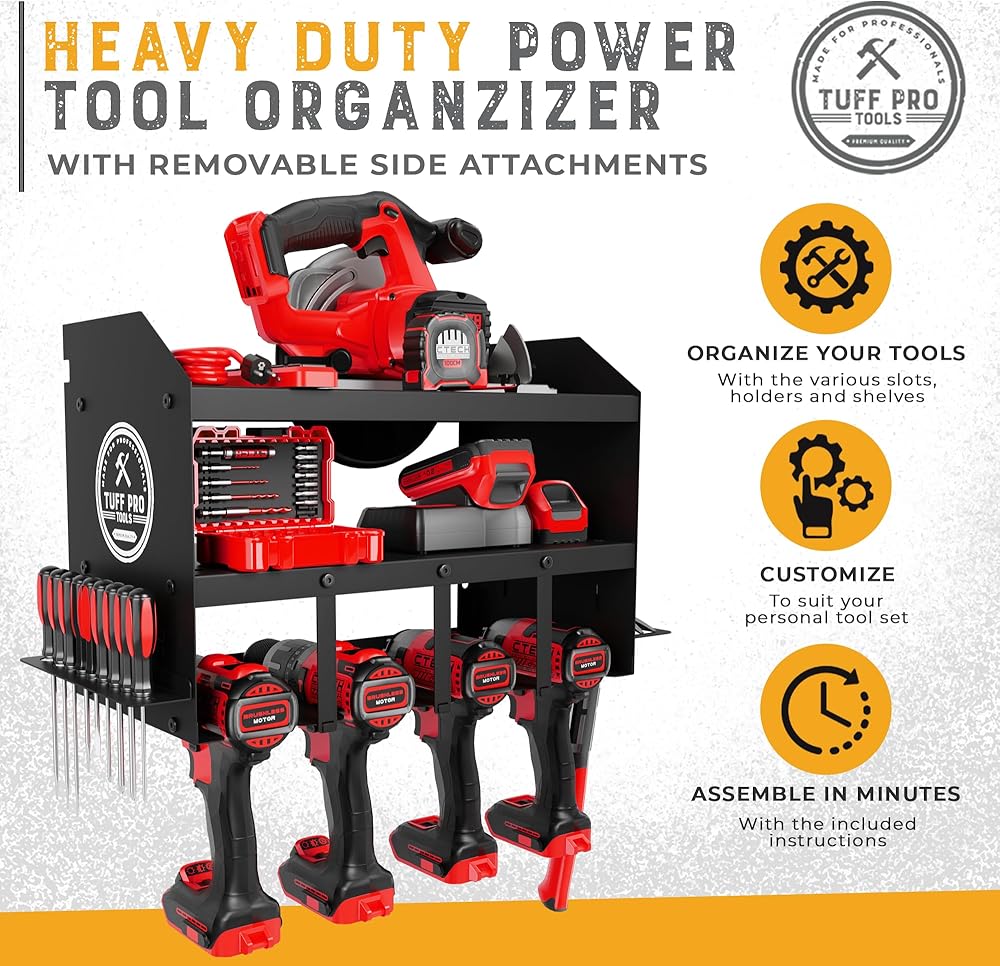 • KEEP YOUR TOOLS WITHIN ARMS REACH with the Tuff Pro Tools power tools organizers and storage racks. Our professional-grade power tool holder wall mount keeps your tools secure, organized and an arm's length away