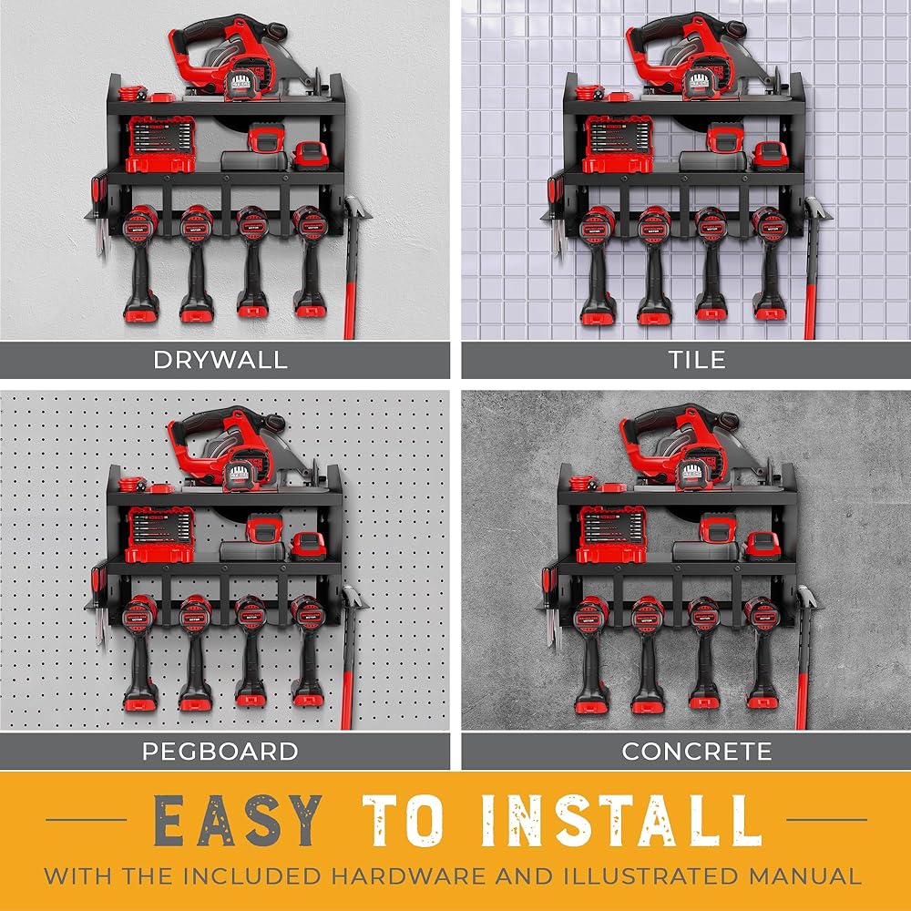 • INCLUDES EVERYTHING YOU NEED to set up your power tool organizer, including installation hardware and easy-to-follow assembly instructions. Mount it on concrete, wood, and stud walls as well as peg boards