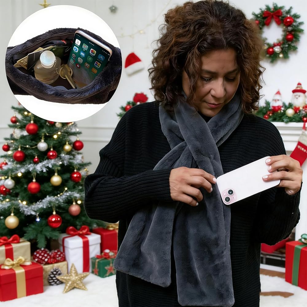 【هدية مثالية】 يعد هذا الوشاح المصنوع من الفرو الصناعي هدية مدروسة بمقاس واحد يناسب الجميع للأمهات والمسافرين والمدرسين وأي شخص يقدر الإكسسوارات المريحة مع مساحة تخزين ذكية مخفية. قطعة شتوية أساسية عملية بقدر ما هي فاخرة