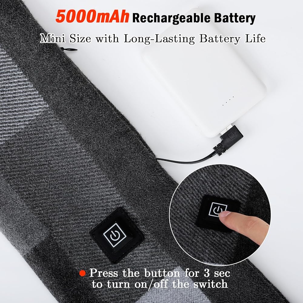 【بطارية 5000 مللي أمبير في الساعة وقابلة لإعادة الشحن】- يأتي الوشاح الساخن مع بطارية قابلة لإعادة الشحن 5 فولت 5000 مللي أمبير في الساعة توفر 3-4.5 ساعات من الدفء. بطارياتنا صغيرة جدًا، وتزن 3.7 أونصة فقط، وتتناسب تمامًا مع الوشاح. توفير الدفء الآمن وطويل الأمد دون القلق بشأن زيادة وزن رقبتك.