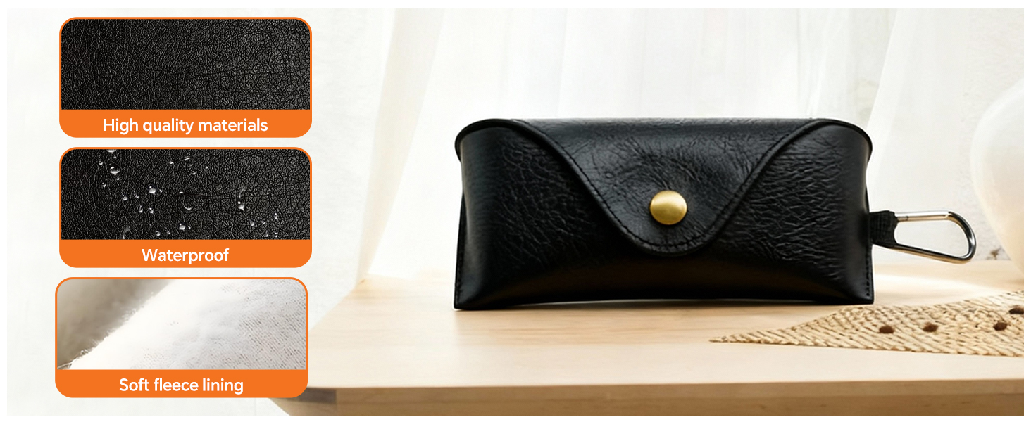 جلد PU أنيق مع مظهر كلاسيكي: مصنوع من جلد PU الفاخر، تتميز حافظة النظارات هذه بملمس كلاسيكي رائع يبدو أنيقًا وناعم الملمس. متين وسهل التنظيف ومثالي لأي شخص يحب الأسلوب البسيط والخالد
