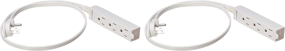 شريط طاقة لسلك تمديد داخلي بطول 3 أقدام و3 شقوق من أمازون بيسكس - قابس مسطح، مؤرض - 13 أمبير، 1625 واط، 125 فولت تيار متردد - عبوتان، أبيض