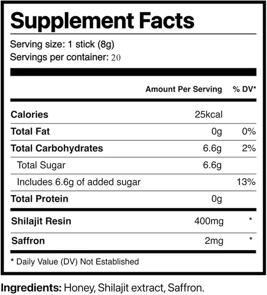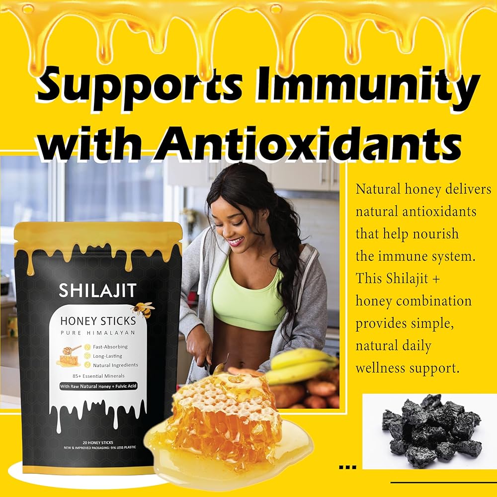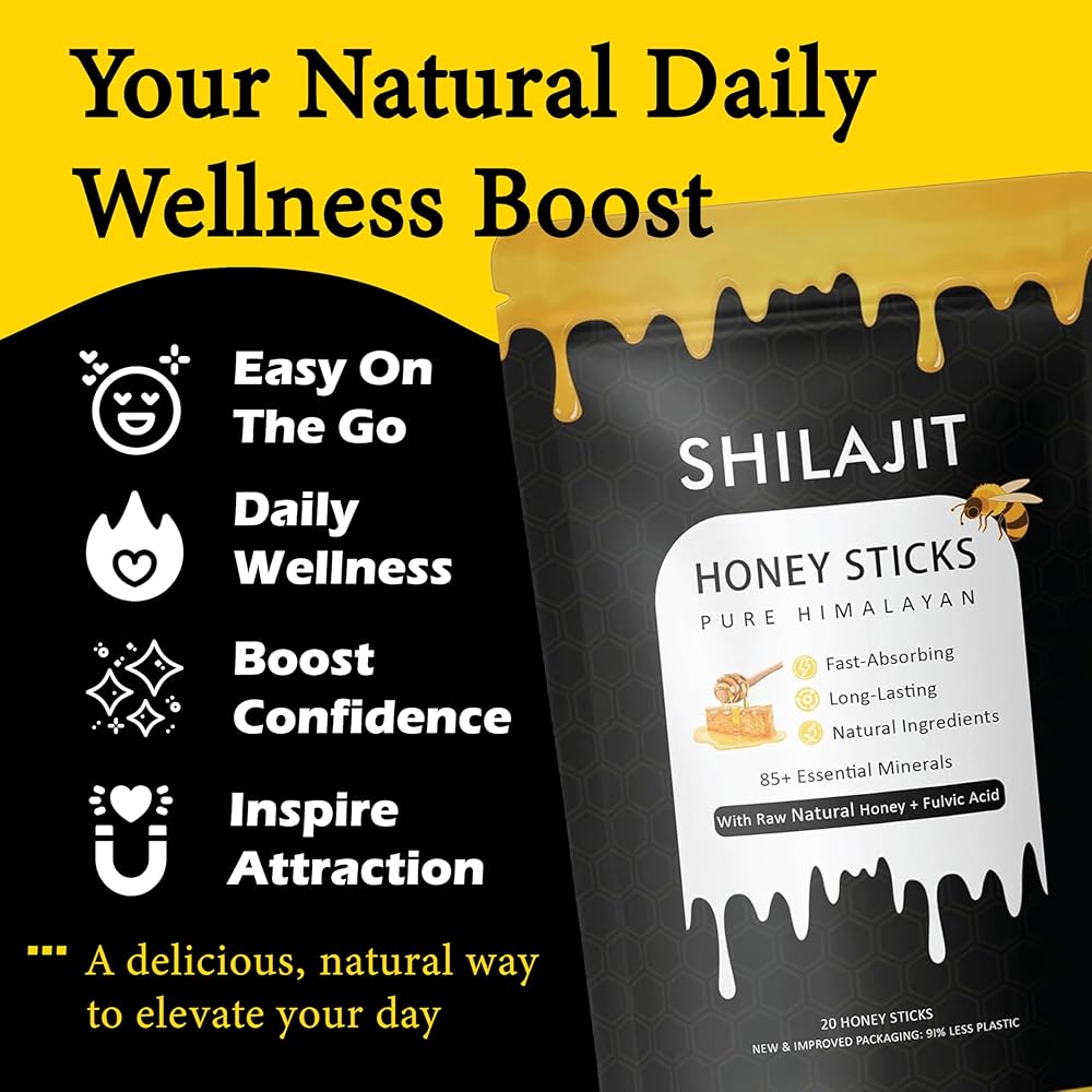 تعزيز الطاقة والحيوية: شيلاجيت الهيمالايا غني بحمض الفولفيك، المعروف بتعزيز التمثيل الغذائي الخلوي وتحسين مستويات الطاقة. يوفر التآزر الطبيعي بين الشيلاجيت والعسل دفعة قوية لحيويتك اليومية، مما يجعله مكملاً مثاليًا لأنماط الحياة النشطة.