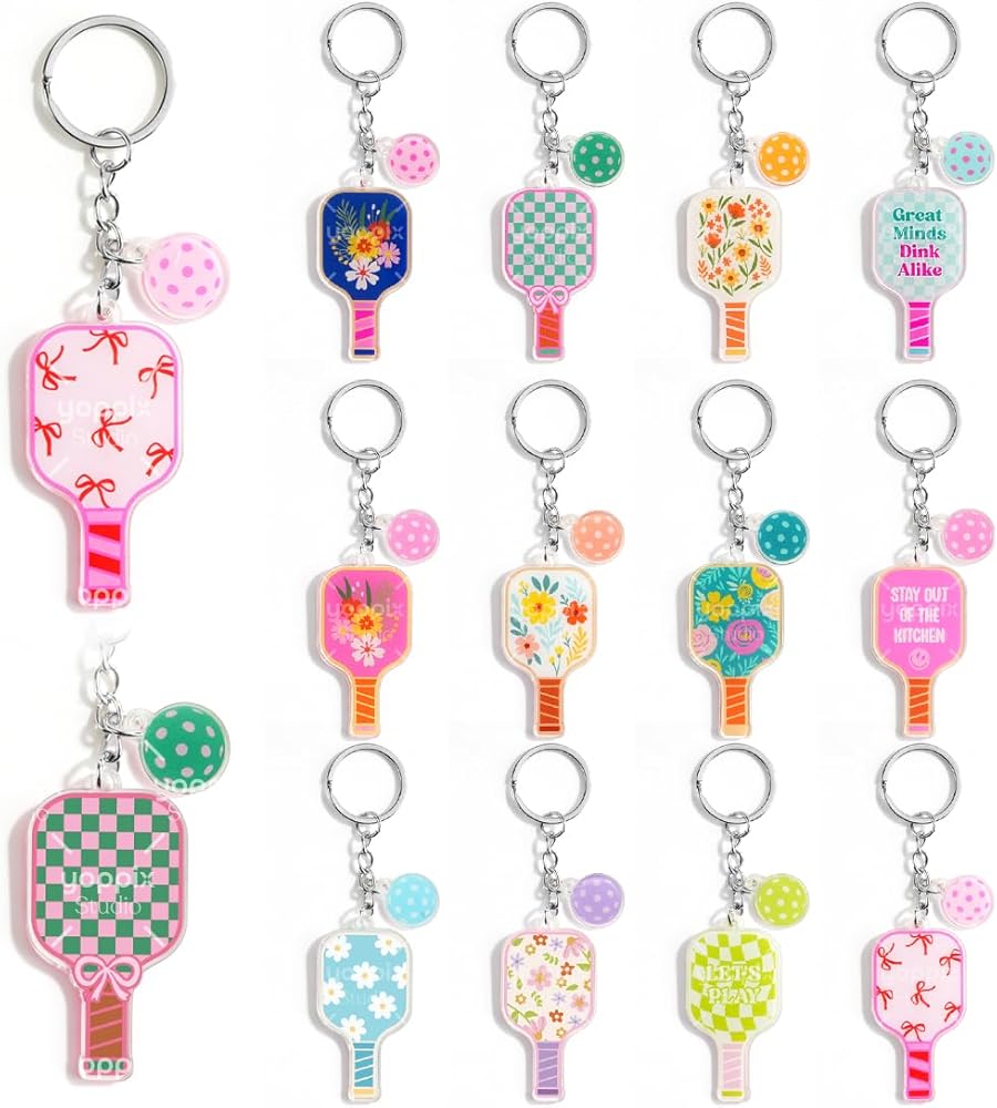 YOPPIX 12PCS Pickleball Keychain Gifts for Women, Pickleball Party Gifts Decorations for Players Sports Lovers Team Party Favors