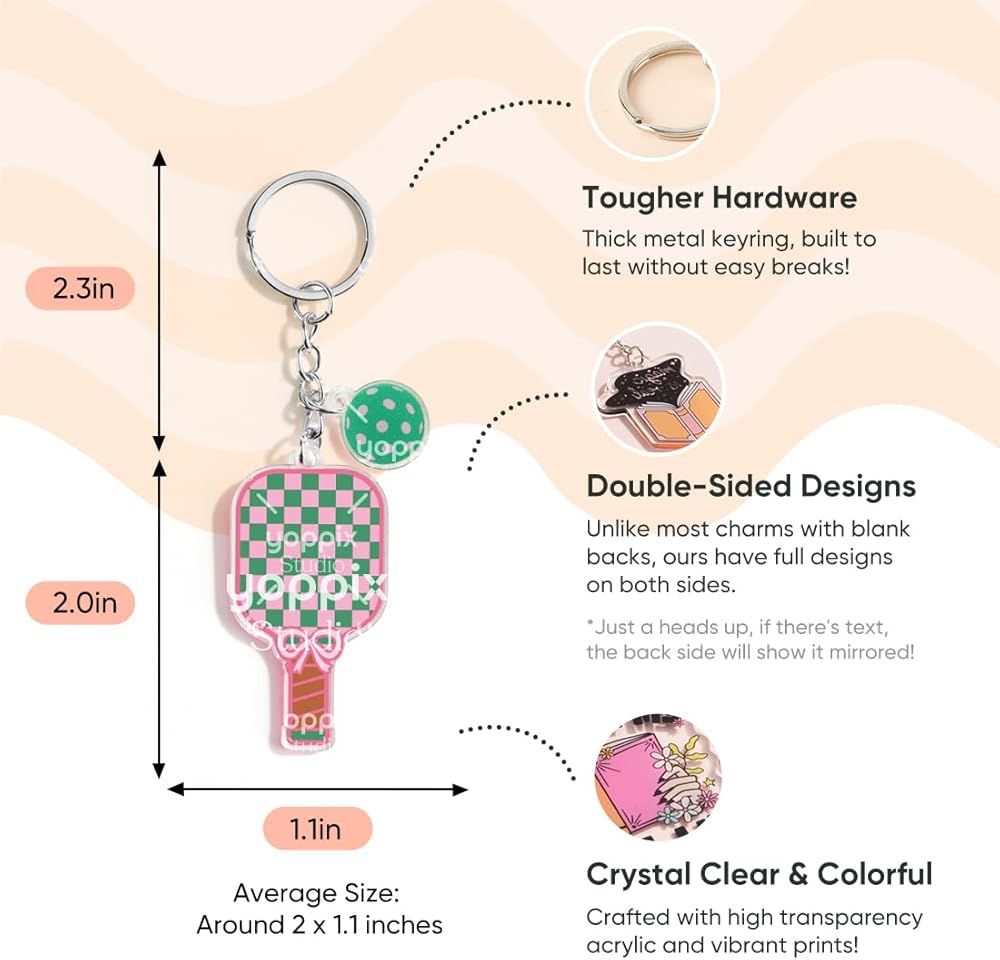 Versatile Usage: These keychains aren't only cute—they're functional, too! Use them as luggage tags for quick identification, attach them to gym bags for a sporty look, or style them as zipper pulls. A versatile must-have for every pickleball fan.