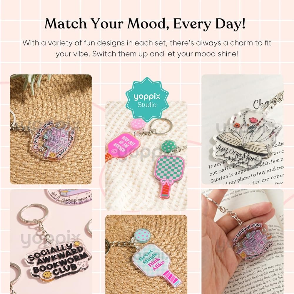High Quality: Crafted from premium acrylic and alloy, these keychains are both sturdy and comfortable to wear. Their lightweight build makes them easy to carry all day, while a protective film on both sides prevents scratches and dust—just peel it off before use!