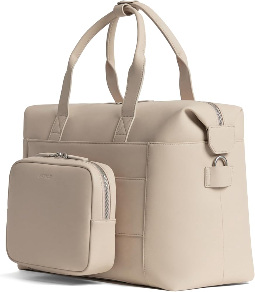 Meet your everywhere duffel—built to organize the day trip, gym run, or quick weekend away. The Metro Duffel pairs a roomy 22 L main compartment with a 15" laptop sleeve, interior zip pocket, and two side pockets that secure with magnetic snaps, keeping a bottle or umbrella upright and out of the way. When you're rolling luggage, the trolley sleeve slides over your suitcase handle and cleverly converts into a pocket when you don't need it. What sets Metro apart is the QuickSnap™ Modular Kit System. The included Metro Classic Kit snaps on/off in seconds so your in‑flight or on‑the‑go essentials can ride seat‑side; swap kits across Metro bags as your day changes. Materials are water‑ and scratch‑resistant, in premium nylon or ultra‑microfibre vegan leather—and the entire Metro collection uses only vegan materials. Specs: 16.3" × 11.2" × 7.2"; 22 L; 3 lb (nylon) / 3.6 lb (vegan leather). Warranty: 2‑year limited warranty. What's Included – Metro Classic Kit (front pouch): water‑resistant vegan leather construction; zip pocket with translucent window; two accessory pockets; removable key carabiner. Kit size 8.75" × 6.75" × 2"; 0.6 lb. Monos is proud to be the first North American luggage brand to achieve Certified B Corporation® status, joining a community of like-minded businesses committed to the highest standards of social and environmental stewardship. The B Lab assessment, at the heart of our B Corp certification, holds us accountable for our impact across five key areas – governance, workers, community, environment, and customers. This certification represents more than a seal of approval, it's a testament to our belief that thoughtful design can coexist with social and environmental consciousness. For the discerning traveller who values quality over quantity, this certification assures that every Monos piece is crafted with careful consideration for both people and the planet. By choosing us, you embrace a way of seeing – one that values longevity over transience and purpose over excess.