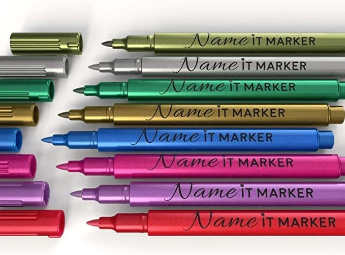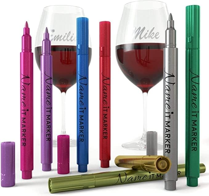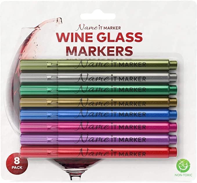 اسم إت ماركر، أقلام زجاجية معدنية نبيذ، حبر آمن غذائيًا بألوان مرحة! أضف طابعك الشخصي على مشروباتك مثل النبيذ ، مجموعة من 8 قطع