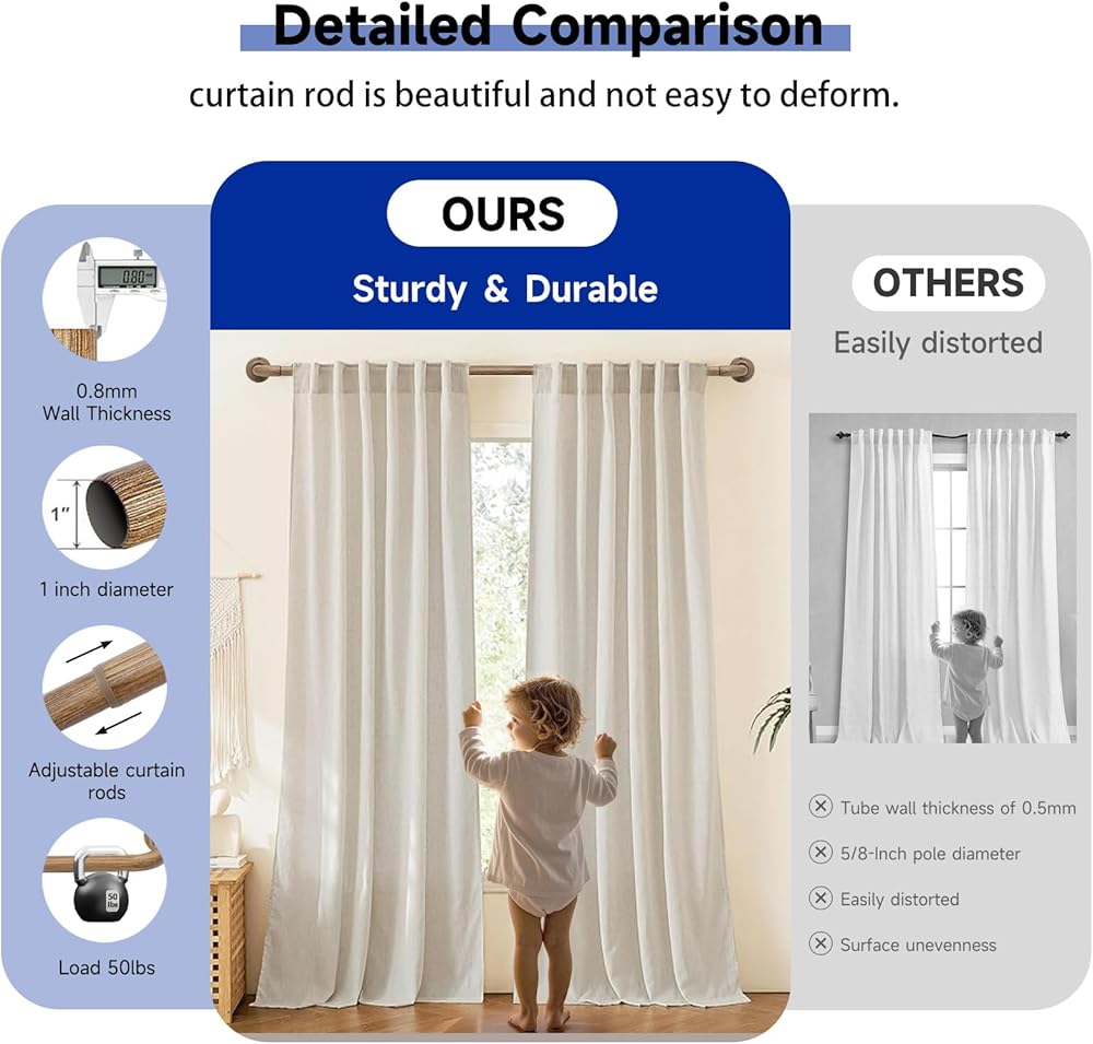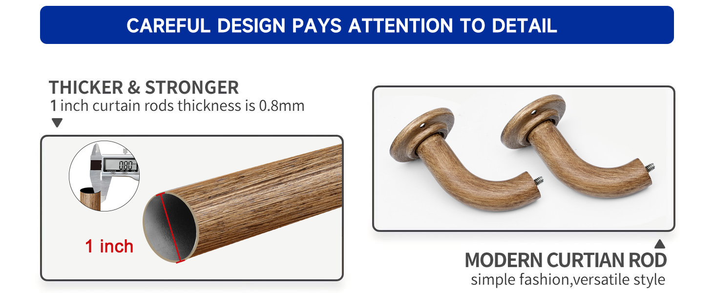 【معالجة النوافذ المزخرفة】يضيف تصميم السطح المزخرف بحبيبات الخشب أضواءً على سطح النافذة ويلفت انتباهك. يتوافق قضيب الستارة الخشبي الفريد هذا بشكل مثالي مع مختلف أنماط المنزل (البسيطة والرجعية والحديثة والريفية والصناعية وما إلى ذلك)، والأقمشة من مجموعة متنوعة من المواد (الساتان والبوليستر والمخمل والأورجانزا والخيش والستائر المعتمة).