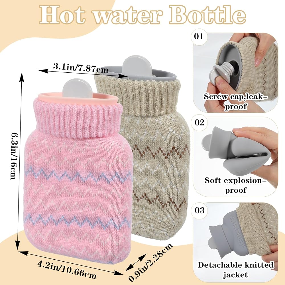• Package Contents: You will receive 2 pcs mini hot water bottle and 2 pcs knitted covers, measuring approximately 103 x 75 x 160 mm / 4.05 x 2.95 x 6.3 inches, with a capacity of approximately 320 ml / 10.82 oz. Suitable for different occasions, moods, and feelings.