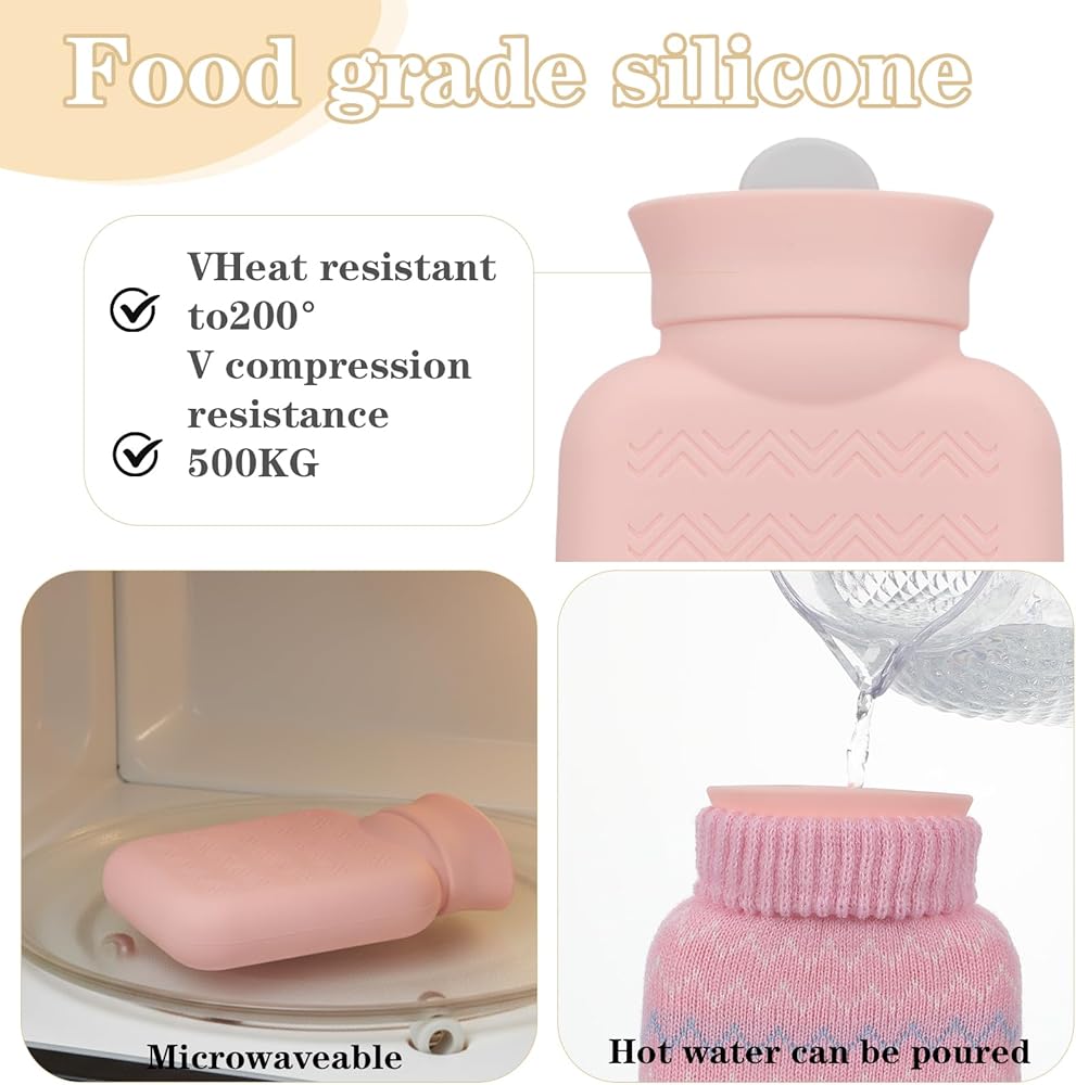• Microwave Safe: This mini hot water bottle with cover can be repeatedly placed in the microwave to heat cold water. Please remove the knitted cover before heating; heating time should not exceed 3 minutes; the microwave power must be less than 800 watts; do not use the microwave's gentle setting; if expansion occurs during heating, please stop heating immediately and do not immediately turn the microwave back on.