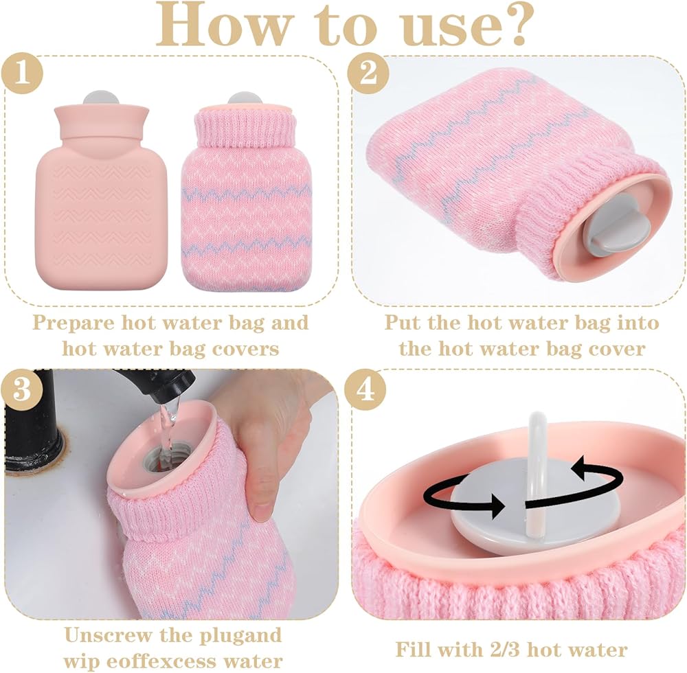 • Leak-proof: Our mini hot water bottles are easy to use; simply fill with hot water and tighten the cap. Do not fill too full; we recommend filling to about two-thirds full.