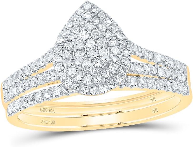 مجموعة مجوهرات جويلز باي لوكس 10 قيراط من الذهب الأصفر 3/8 قيراط والماس الطبيعي والكمثرى وهالة مزدوجة لحفلات الزفاف والخطوبة والذكرى السنوية، مقاس نسائي: 5-9 in Kuwait
