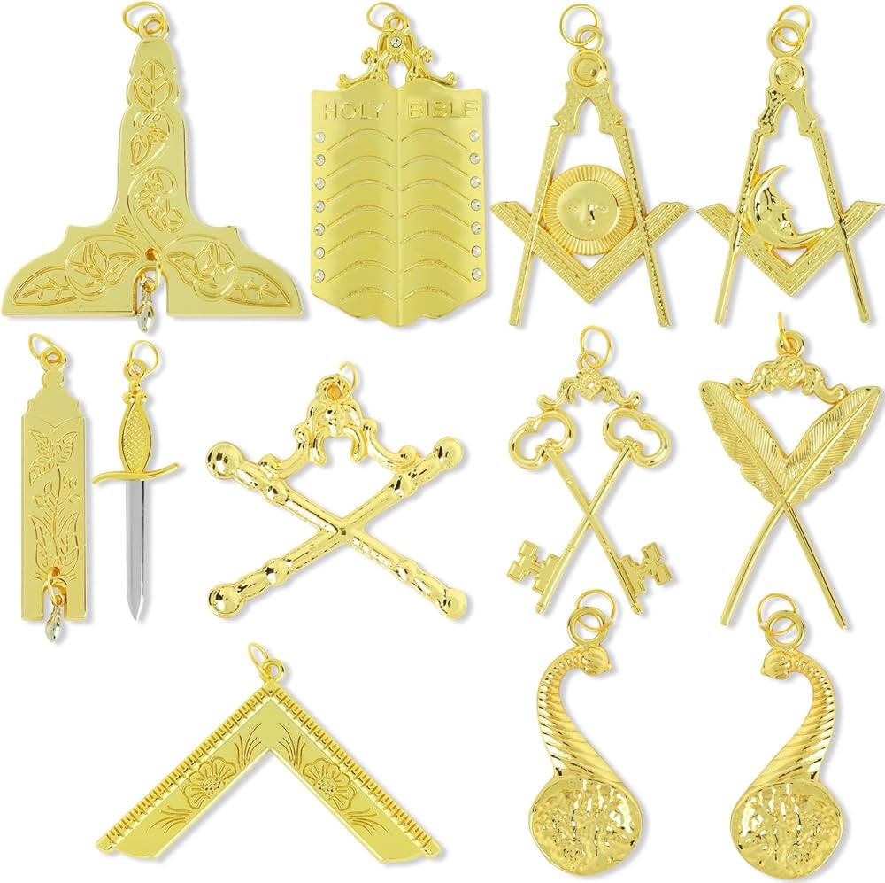 مجموعة مجوهرات ذات ياقة ممتازة من SialkotCrafts Masonic Lodge مكونة من 12 قطعة للأخوة - الشعارات الرسمية لأعضاء النزل