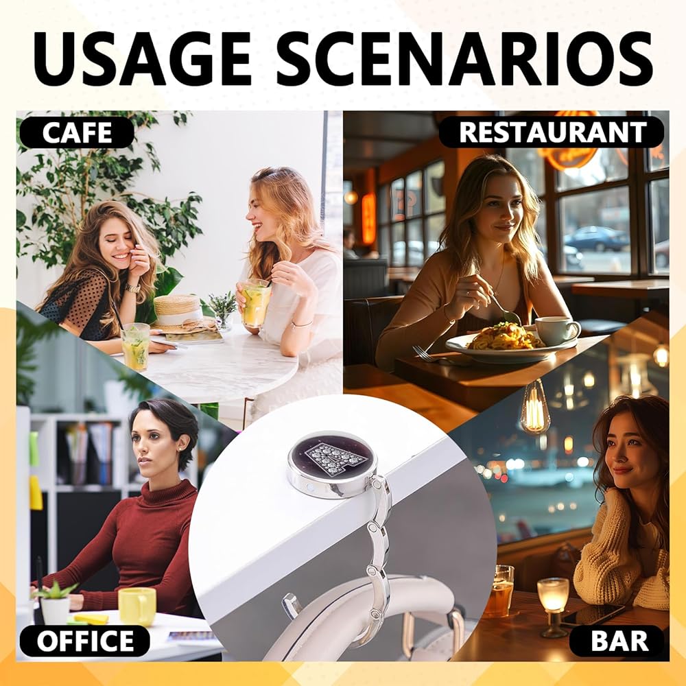 Non-Slip Design: Each purse hook features a non-slip grip rubber backing to prevent slipping on smooth or hard surfaces and keeping your bag firmly in place (Notice: The purse hook fits tables with a thickness of up to 2")