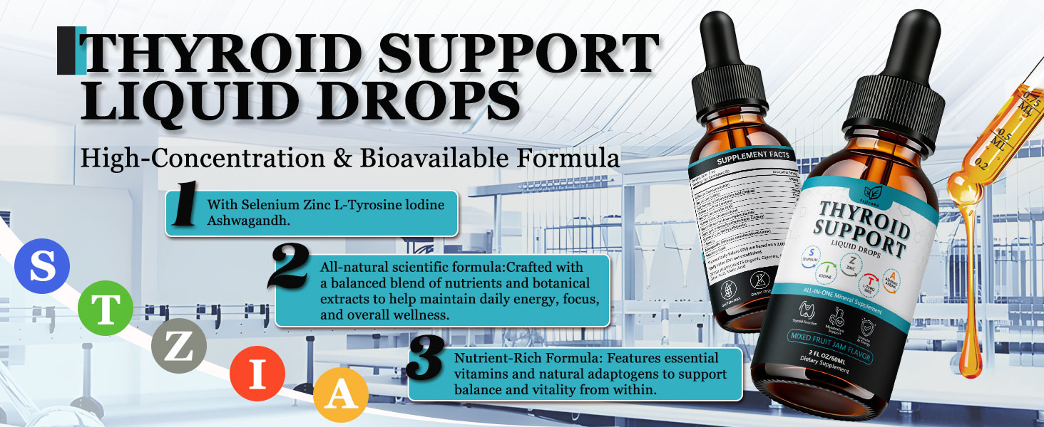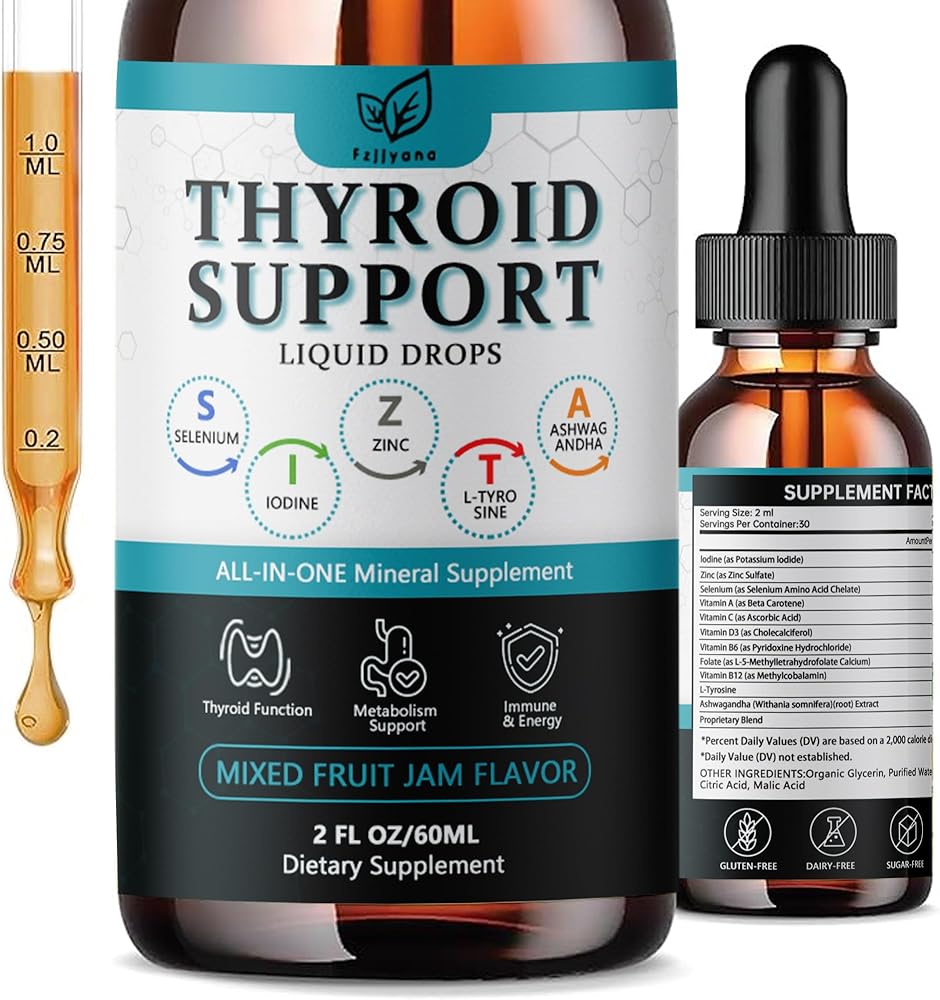 قطرات دعم الغدة الدرقية للنساء والرجال: فهو يجمع بين اليود والسيلينيوم والزنك والنحاس وفيتامين د 3 والأشواغاندا وتيروزين عالي الجودة، ويوفر دعمًا شاملاً للغدة الدرقية من خلال تعزيز توازن هرمون الغدة الدرقية والتمثيل الغذائي والمناعة والصحة العامة.