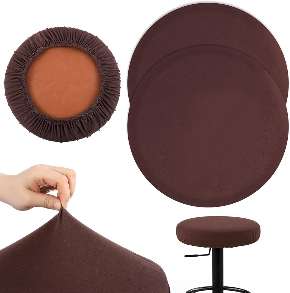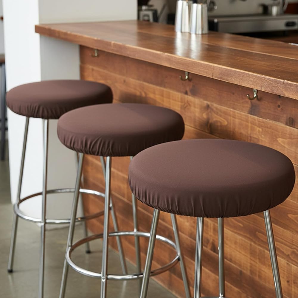 Elastic Design: These coffee-colored round stool covers are made from a high-quality blend of polyester and spandex, providing superior elasticity to fit round chairs of various sizes.