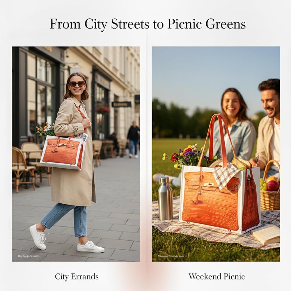 • واسعة وقابلة للطي: تتميز حقيبة اليد الواسعة والعملية هذه بأبعاد كبيرة تبلغ 16.1 × 12.4 × 7.8 بوصة، وتتسع بسهولة للضروريات اليومية أو البقالة أو مستلزمات السفر.