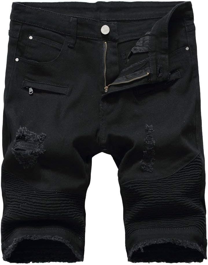 شورت جينز أبيض غير رسمي للرجال بقصة ضيقة ممزقة وممزقة، شورت جينز أسود من قماش الدنيم القصير