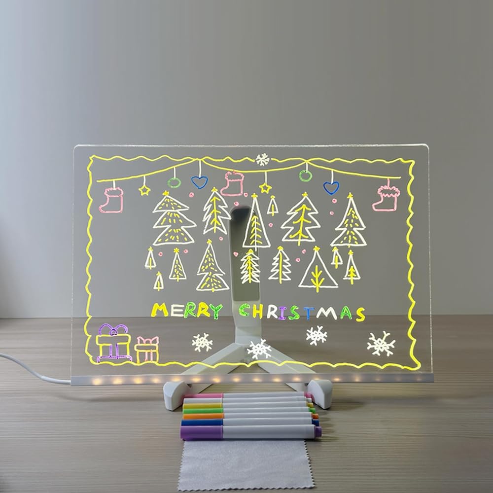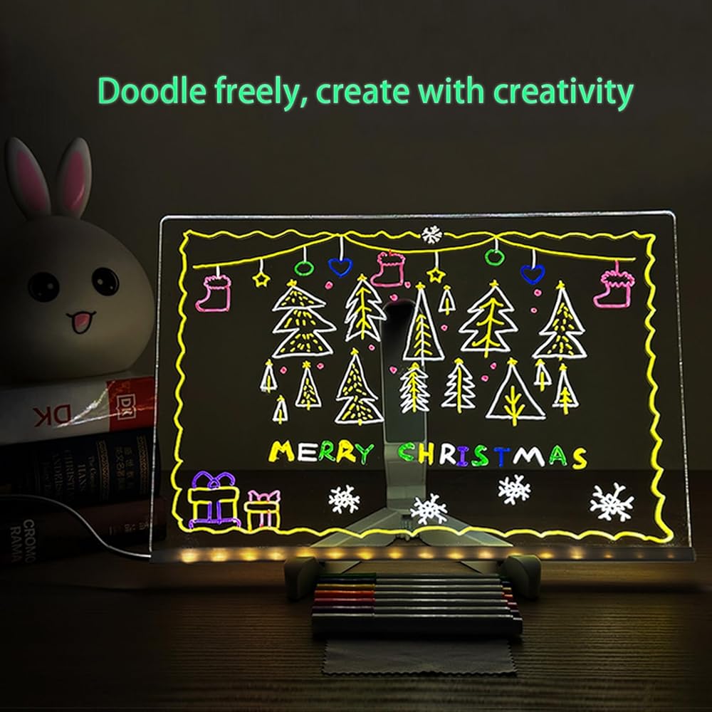 لوحة ملاحظات LED بألوان، لوحة رسائل أكريليك مضيئة LED 7 ألوان قلم/حامل، لوحة تعليم الرسم والكتابة الممتعة، لوحة ملاحظات فنية للمكتب والمدرسة والمنزل (5.91 * 5.91 بوصة)