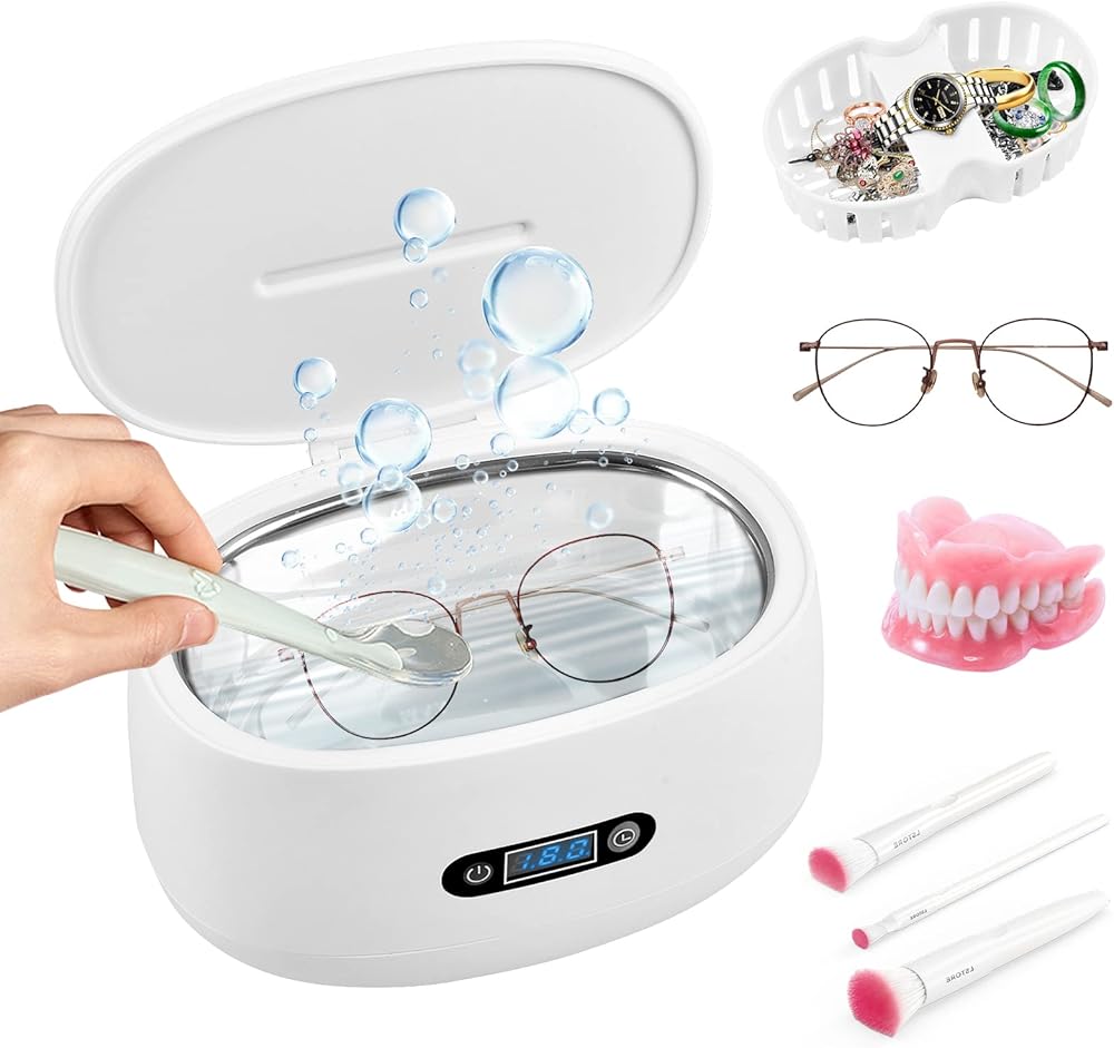 منظف ​​المجوهرات بالموجات فوق الصوتية، منظف المجوهرات مع مؤقت رقمي 40 كيلو هرتز، 600 مل، منظف المجوهرات بالموجات فوق الصوتية مع سلة لتنظيف نظارات العين، الخواتم، الساعة، العملات المعدنية، الفضة...