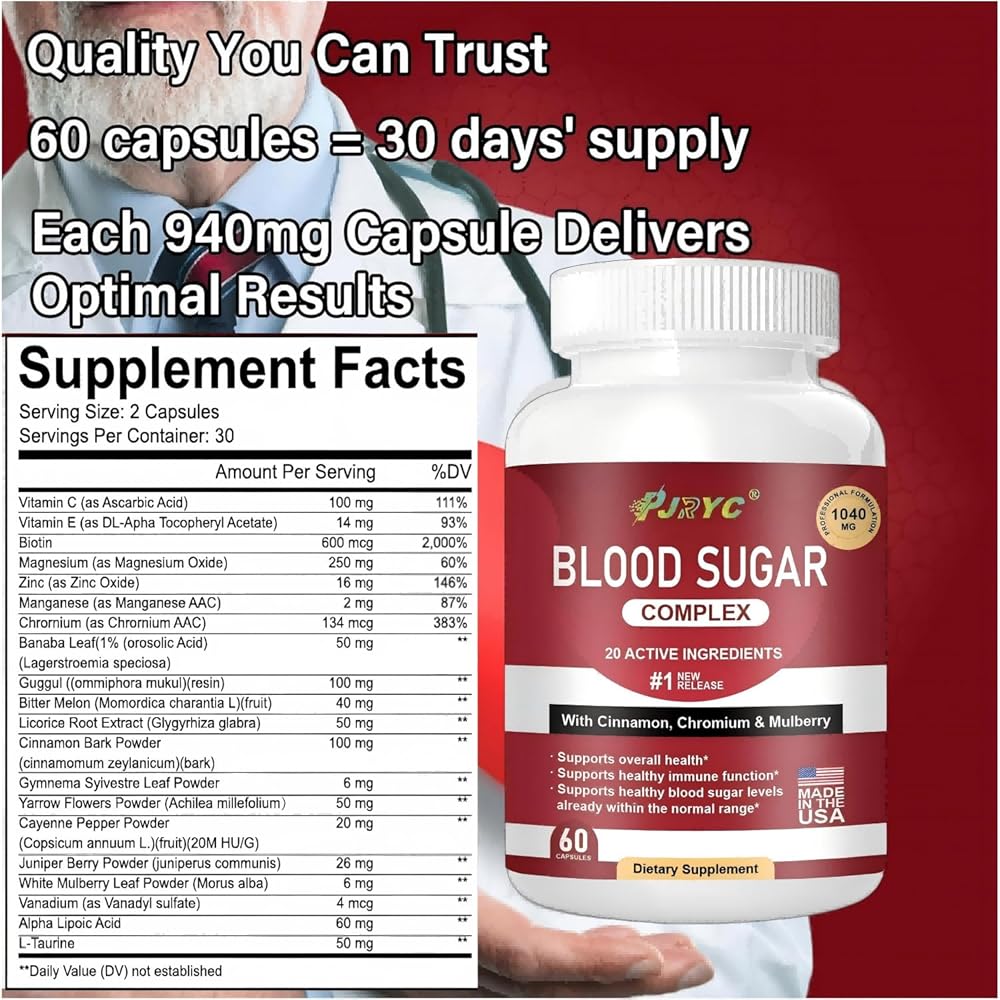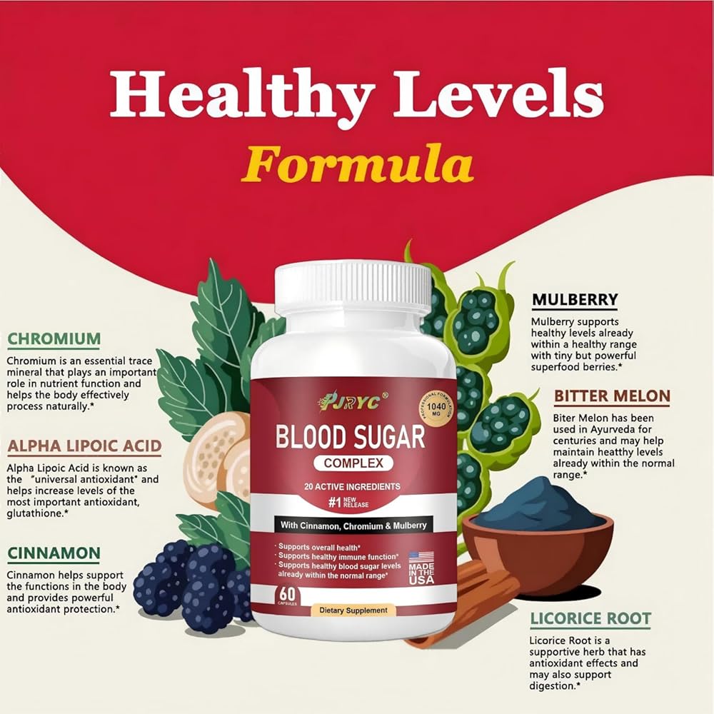 • مركب سكر الدم - 20 تركيبة مكونة قوية: مزيجنا العلمي يجمع بين القرفة والكروم والبطيخ المر والتوت