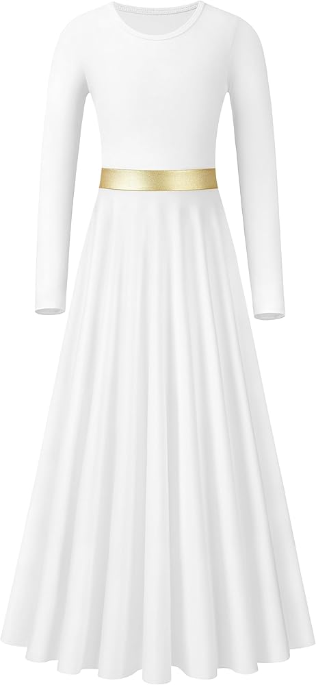 فستان رقص نسائي مدح، ملابس رقص طقوسية ذهبية معدنية بطول كامل، زي الكنيسة، رداء العبادة، أسلوب بسيط in Kuwait