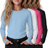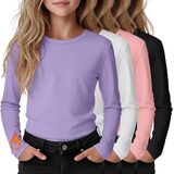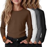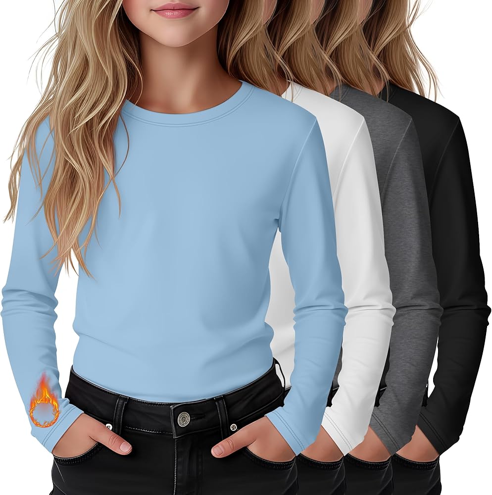 Girls' fall thermal t-shirts, crew neck, casual plain t-shirt top, simple but fashionable style, perfect for fall and winter.