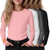 • Plain Tees and Classic Design: girls' plain thermal shirts are designed with loose and classic round necks, which are easy to put on and take off; Girls' casual fleece lined shirts, cute colors, add more cute colors to your child's daily look in fall