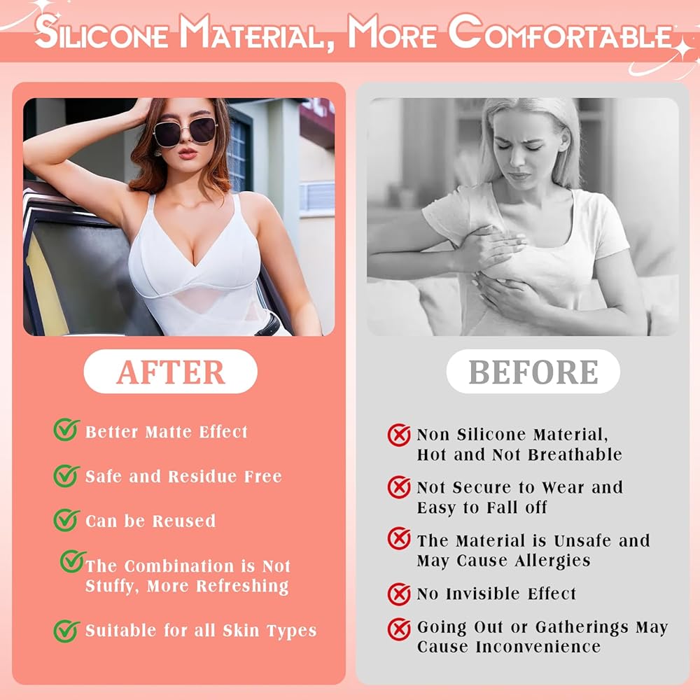 مريح وسري: مصنوع من السيليكون، ويوفر راحة ممتازة حتى عند ارتدائه لفترات طويلة من الوقت، ويظل غير مرئي تحت الملابس للاستخدام اليومي والمناسبات الخاصة.