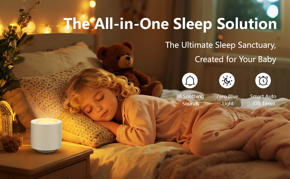 ⏲️ مؤقت النوم الذكي التدريجي: اضبط المؤقت لمدة 30 أو 60 أو 90 أو 120 دقيقة. ستخفت الأضواء تدريجيًا ثم تنطفئ، ويتلاشى الصوت بلطف في آخر 5 دقائق. يساعد ذلك طفلك على النوم بشكل طبيعي ويمنعه من الذعر بسبب الصمت المفاجئ أو الظلام.