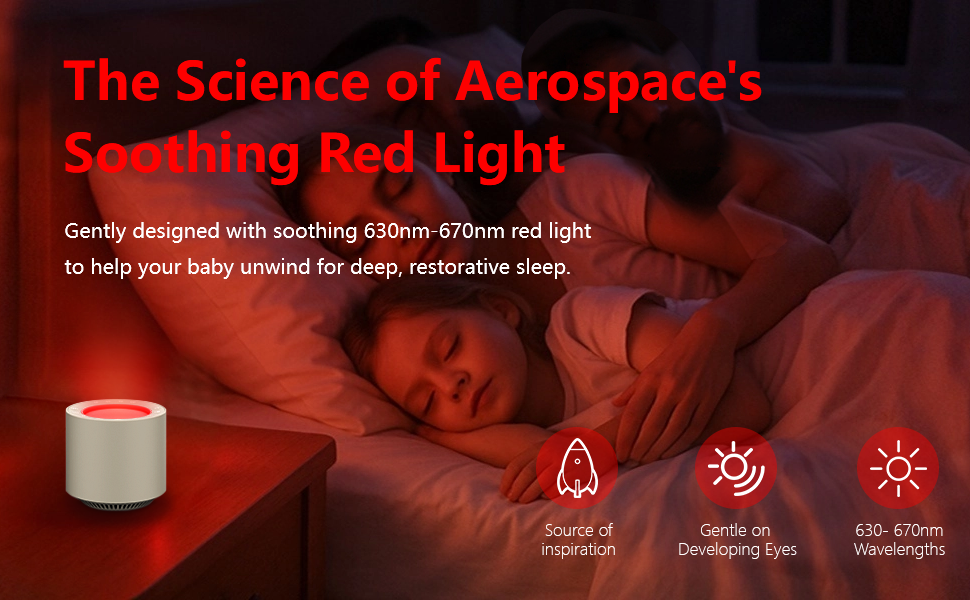 🔴 العلاج بالضوء الأحمر المستوحى من الفضاء الجوي لنوم أعمق: يتميز بأطوال موجية للضوء الأحمر تتراوح بين 630 نانومتر و670 نانومتر، مستوحاة من الأبحاث، للمساعدة في تحفيز إنتاج الميلاتونين الطبيعي. وهذا يدعم إيقاع الساعة البيولوجية لطفلك، مما يشير إلى أن الوقت قد حان للاسترخاء والنوم لفترة أطول.