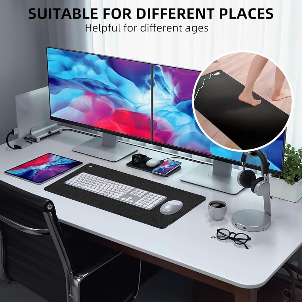 مواد عالية الجودة: الطبقة العلوية السوداء مصنوعة من جلد نباتي، والطبقة السفلية مصنوعة من مطاط غير قابل للانزلاق، وهو صديق للبشرة ومتين وليس من السهل كسره. تتميز حصيرة التأريض للنوم بسطح أملس وموصلية ممتازة. يمكن استخدامها ليس فقط كسجادة أرضية، ولكن أيضًا كسجادة مكتب، وسجادة نوم ووسادة ماوس