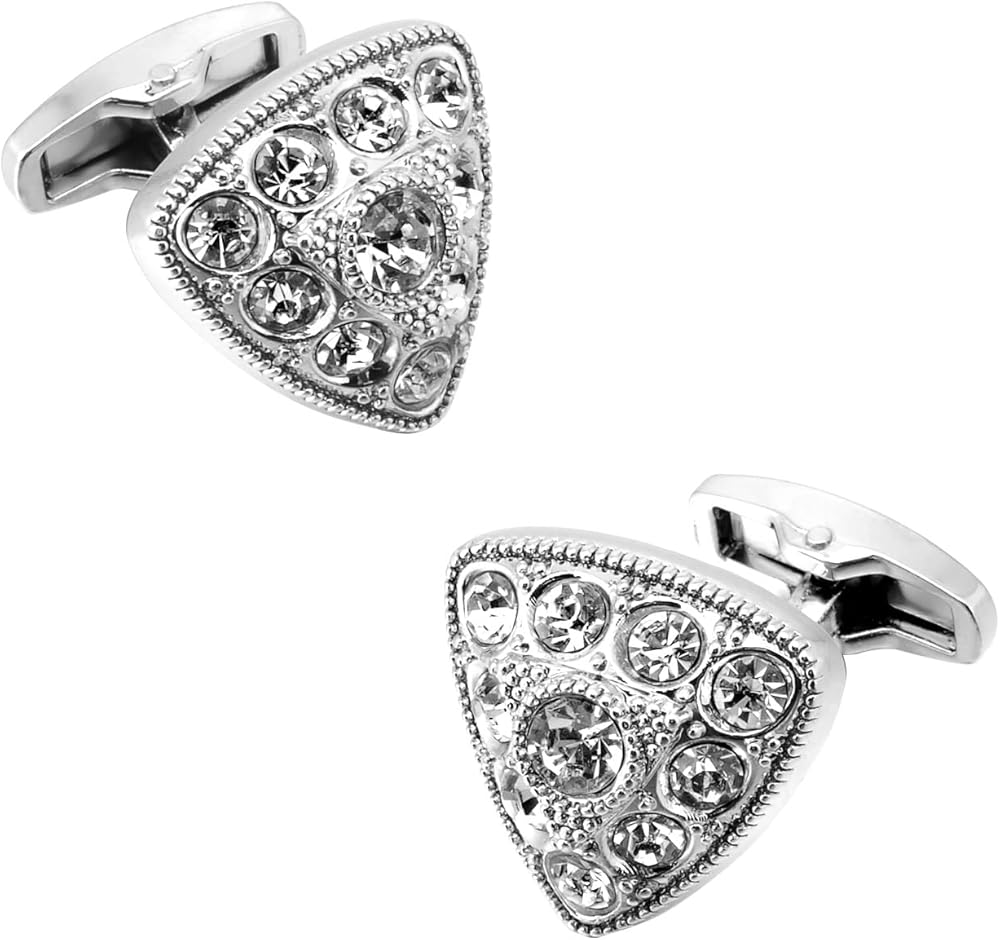 • Elegant Design: These cufflinks feature a distinctive triangular shape adorned with sparkling zirconia stones, perfect for adding a touch of sophistication to any outfit.