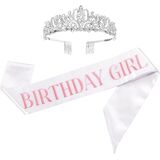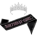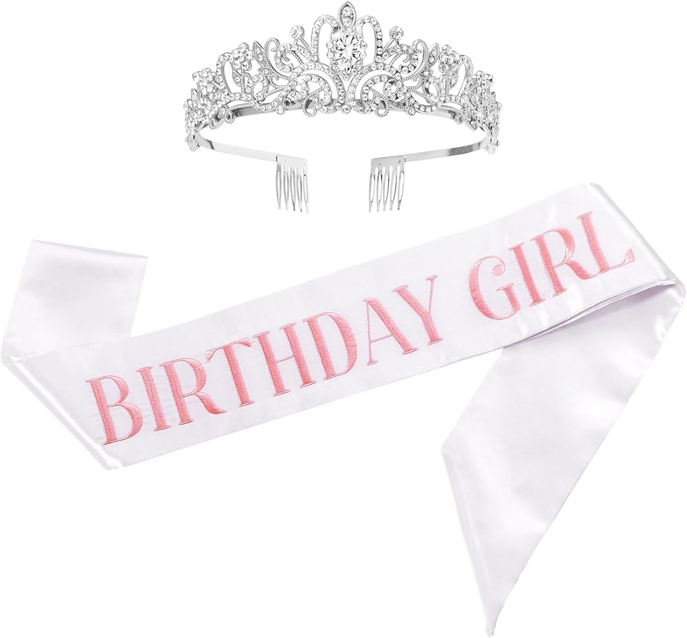 Package Contents:1 embroidered sash and 1 silver rhinestone tiara — everything you need to shine at your party.