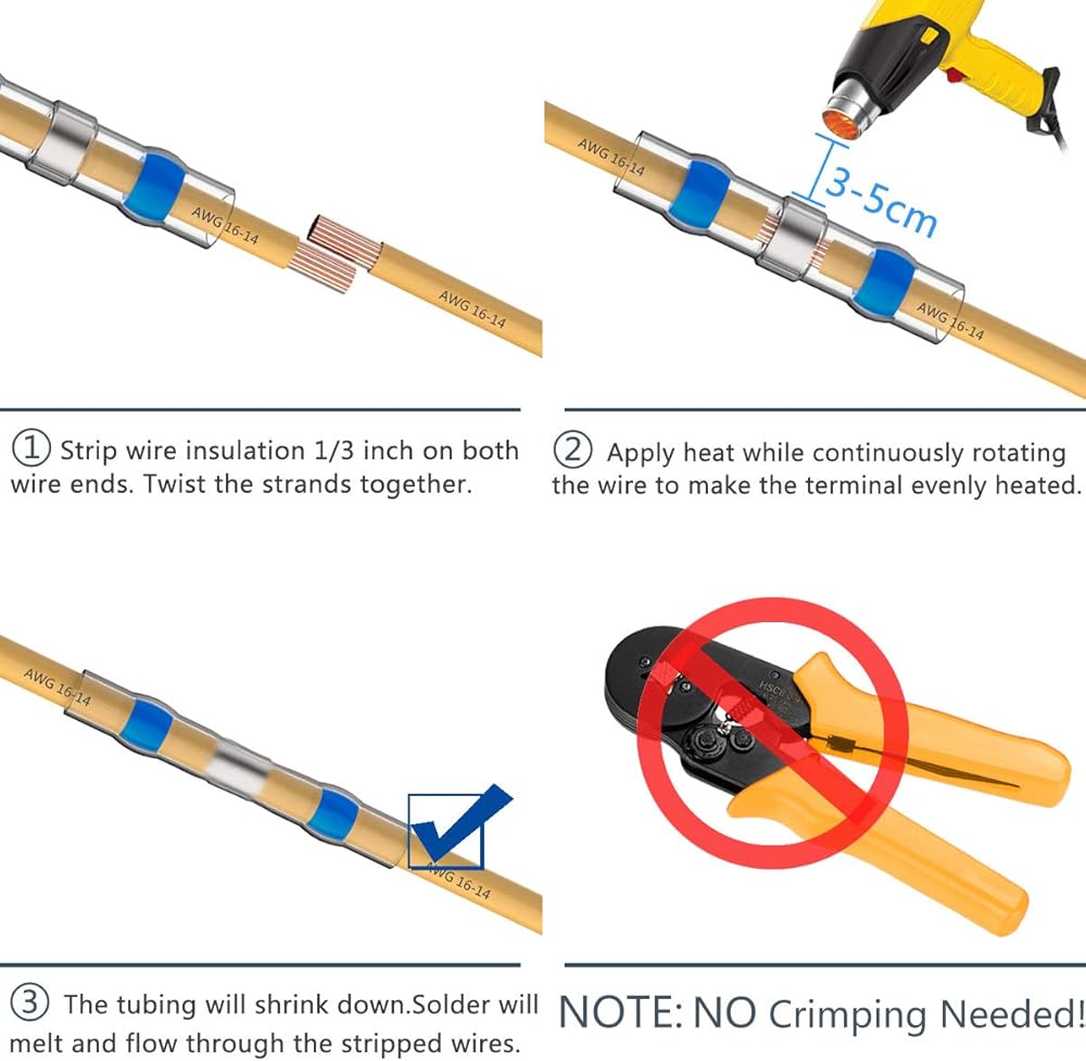 -- 40 × موصلات انكماش زرقاء: القطر 4.5 ملم، المقطع العرضي للكابل: 1.5-2.5 ملم مربع (ايه دبليو جي: 16-14)؛