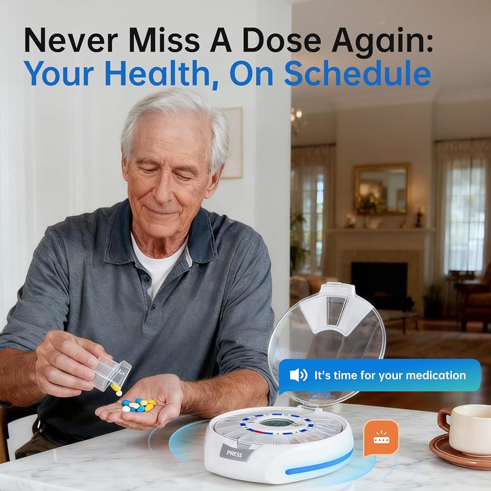 • ✔ 【شاشة كبيرة واضحة ومنبه صوتي ومرئي】 - يتميز موزع الأدوية التلقائي بشاشة LCD كبيرة مقاس 2.36 بوصة لعرض معلومات واضحة. في وقت تناول الدواء، سيتم تنشيط الجرس وضوء LED الوامض في وقت واحد، مما يضمن عدم تفويت أي جرعة أبدًا.