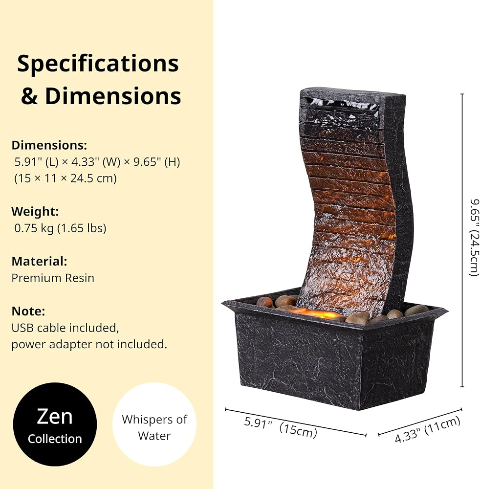 تجربة الشلال الهادئة: انغمس في صوت الماء المهدئ الذي يتدفق بلطف على طول اللوحة المنحنية. مثالي لتقليل التوتر أو تعزيز التأمل أو خلق جو هادئ في أي مكان بالداخل أو الخارج.