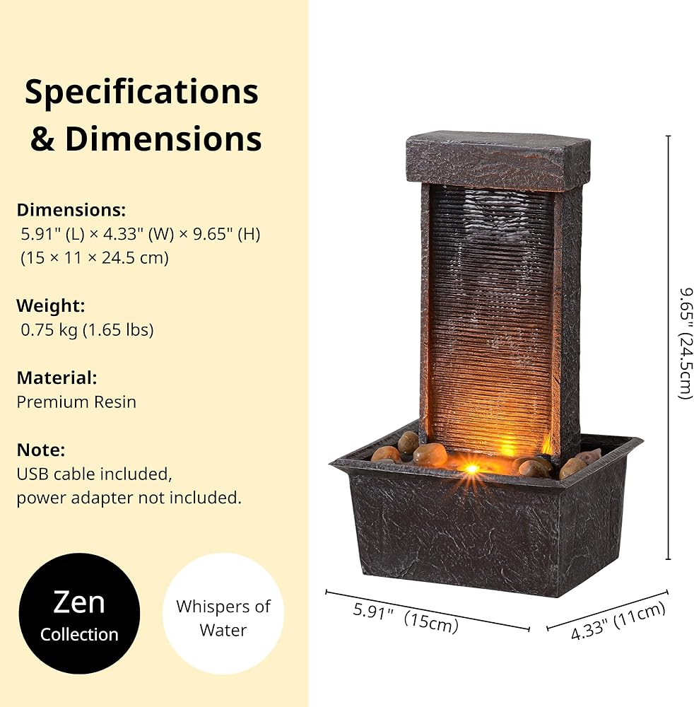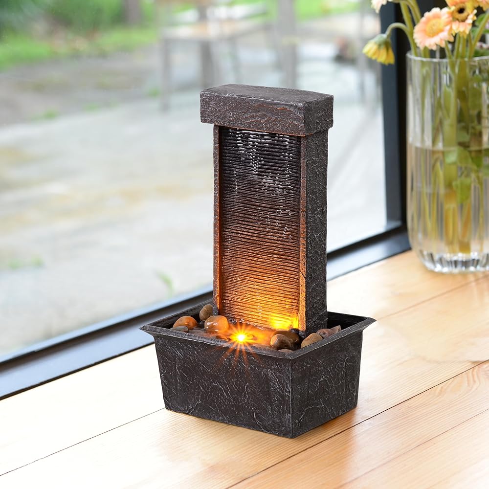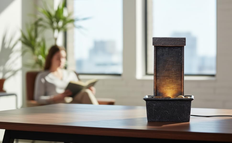 ميزة الشلال الداخلي المريح: استمتع بالصوت اللطيف للمياه المتدفقة المتتالية على طول اللوحة، مما يوفر أجواء مهدئة لتخفيف التوتر أو التأمل أو خلق جو هادئ في الداخل.