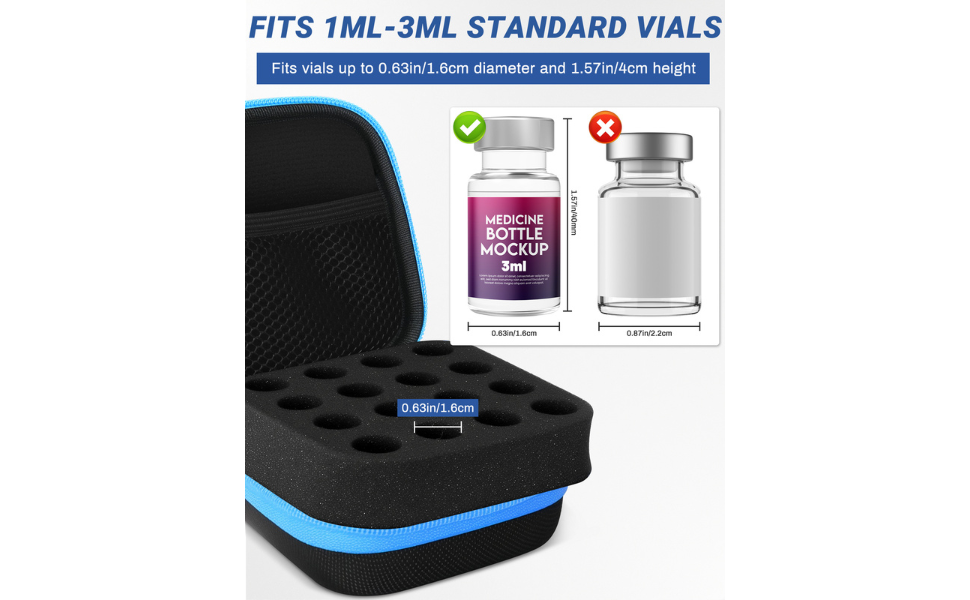 مصنوع لقوارير سعة 1 - 3 مل - تم تصميم حامل القنينة المدمج هذا ليناسب 1 - 3 مل من الأنسولين والببتيد وGLP-1 وغيرها من القوارير الطبية الصغيرة، مما يحافظ على كل شيء في مكانه بشكل أنيق.