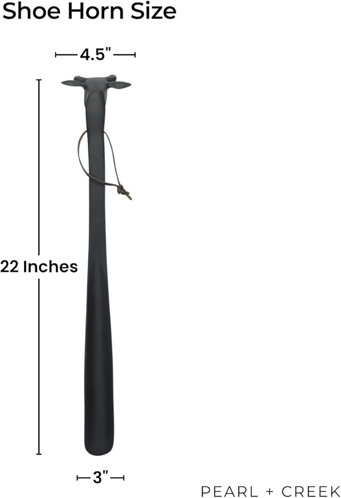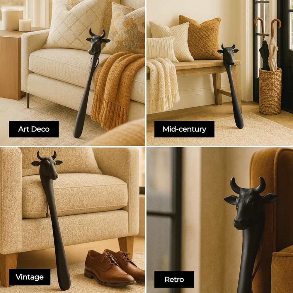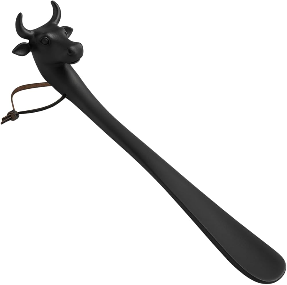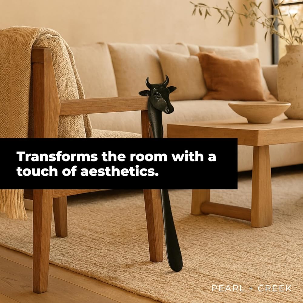 Stylish Design with Practical Purpose – This 22-inch long shoehorn features a sculptural cow head handle with a matte black powder-coated finish, blending everyday function with bold visual appeal.