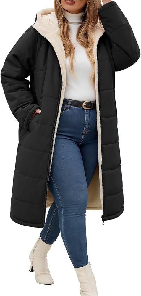 Stay warm, look stylish, and feel confident this winter with the Yusongirl **Women's Plus Size Winter Coat**. Thoughtfully designed for curvier figures, this **mid-length**, **zip up** coat offers a **comfortable** and flattering fit for sizes **1XL to 4XL**. Its **sherpa-lined** interior and thick **fleece** keep you **warm** even in **extreme cold**, while the **windproof** **ribbed cuffs** and insulated layers protect against chilly air.