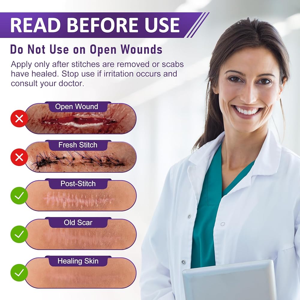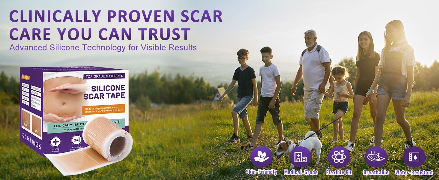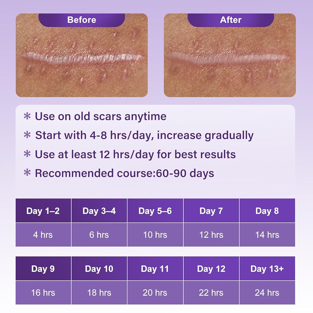 تصميم رول طويل وقابل لإعادة الاستخدام: يتضمن لفة واحدة من شريط السيليكون مقاس 4 سم × 150 سم. مرن وقابل للقطع ليناسب أي شكل أو موقع للندبة - مثالي لإزالة علامات التمدد والعناية المستهدفة بتجاعيد الوجه.