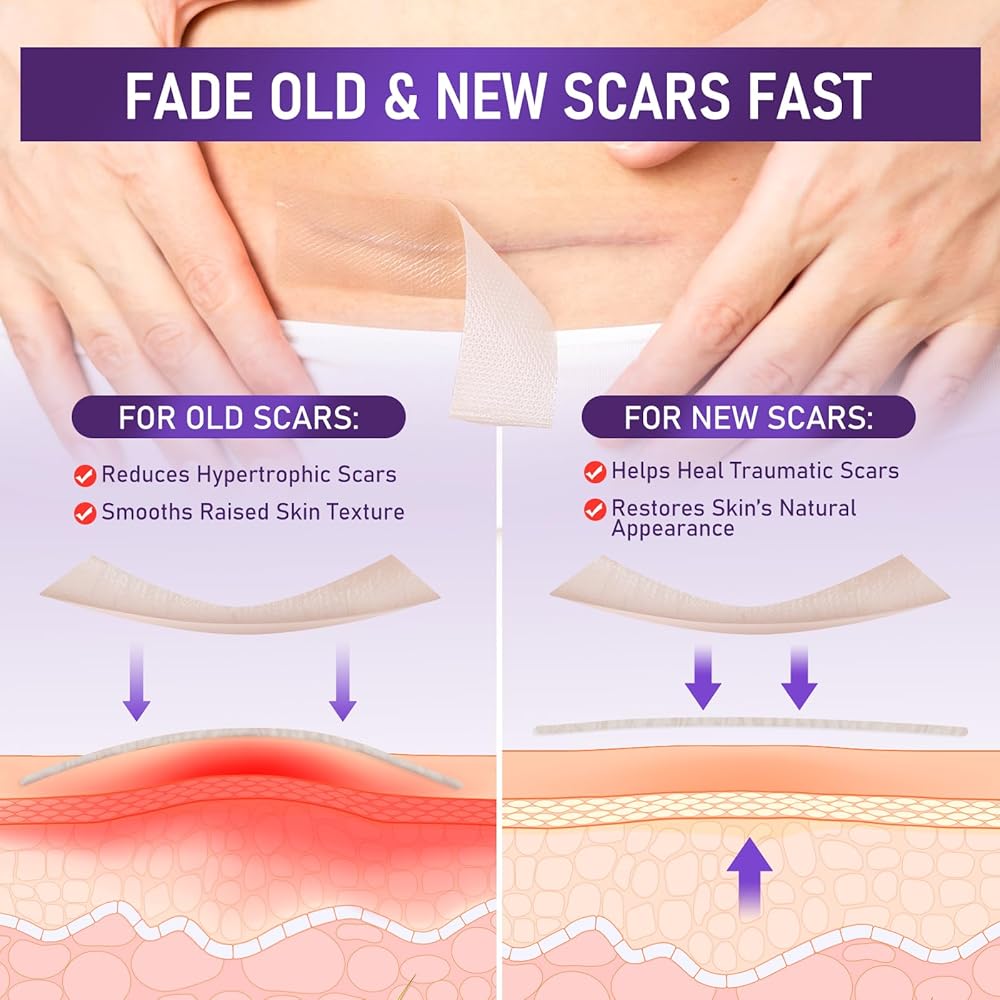 شريط الندبات السيليكوني المتقدم: مصنوع من السيليكون الطبي، يساعد شريط الندبات هذا على تسطيح وتلاشي الندبات الناجمة عن الجراحة وحب الشباب والحروق والإصابات - مناسب للبشرة الحساسة وجميع مناطق الجسم.