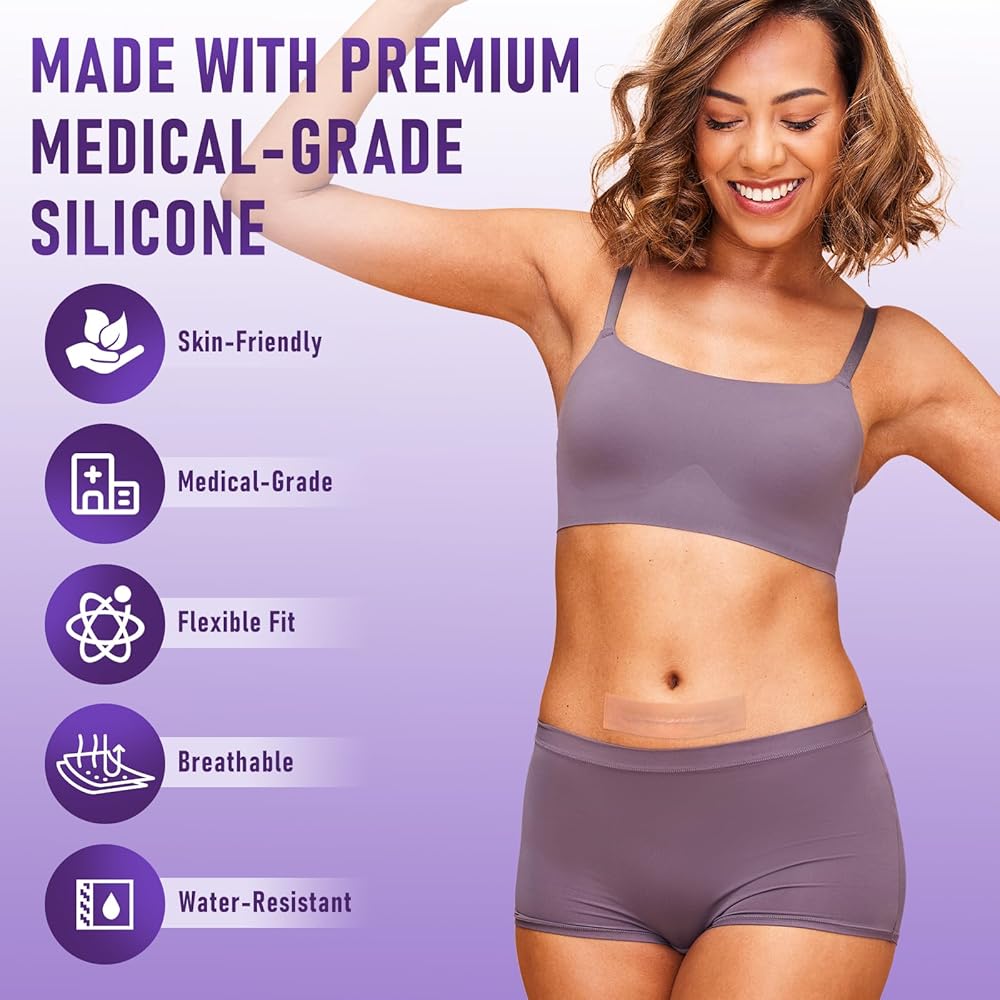 دعم العمليات القيصرية والندبات الجراحية: علاج ضروري للأمهات الجدد. يساعد بشكل فعال في شفاء الندبات الجراحية بما في ذلك الشقوق القيصرية وخطوط شد البطن وغيرها من علامات ما بعد العملية.